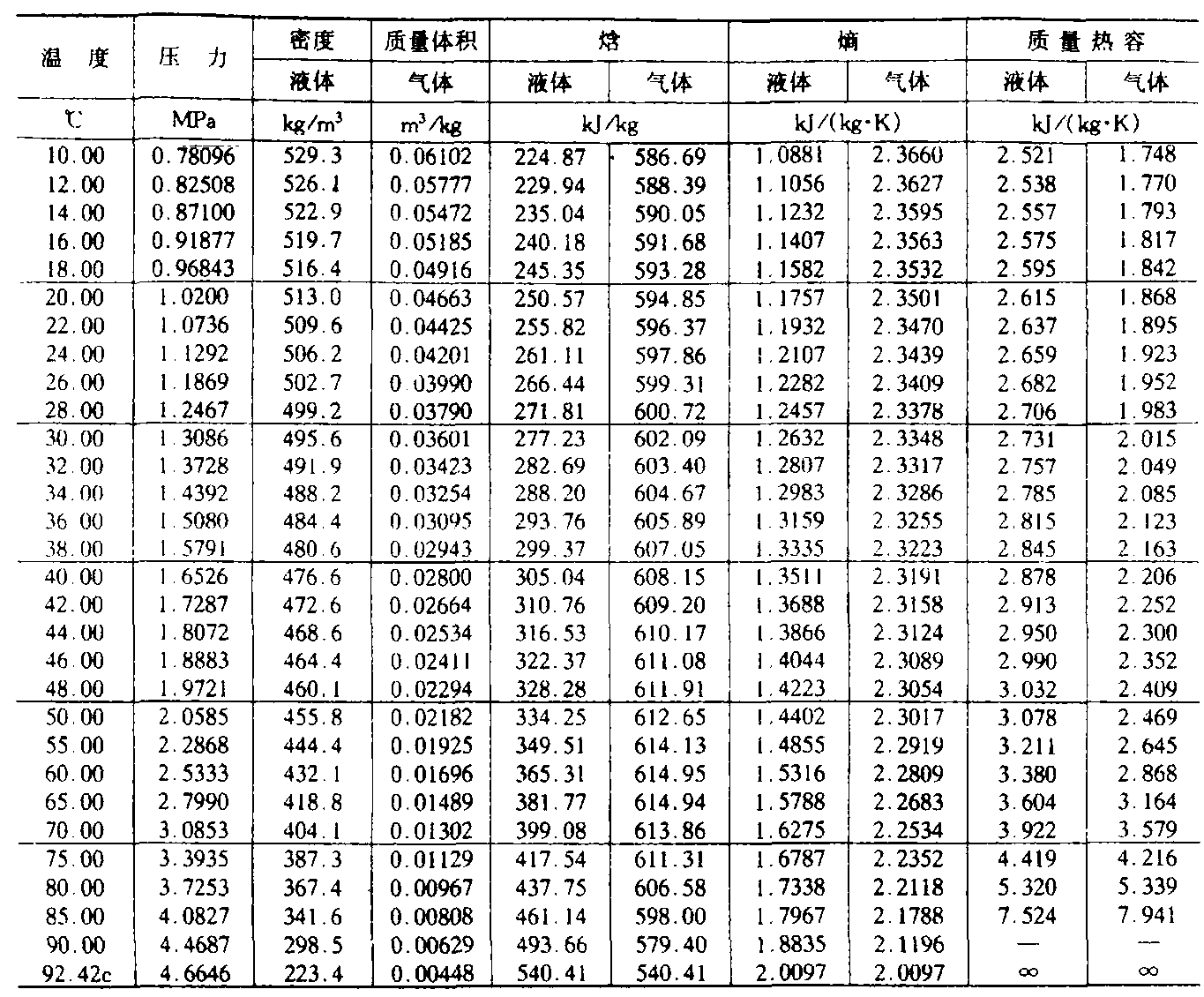 三、R22制冷劑的壓焓圖續(xù)表二