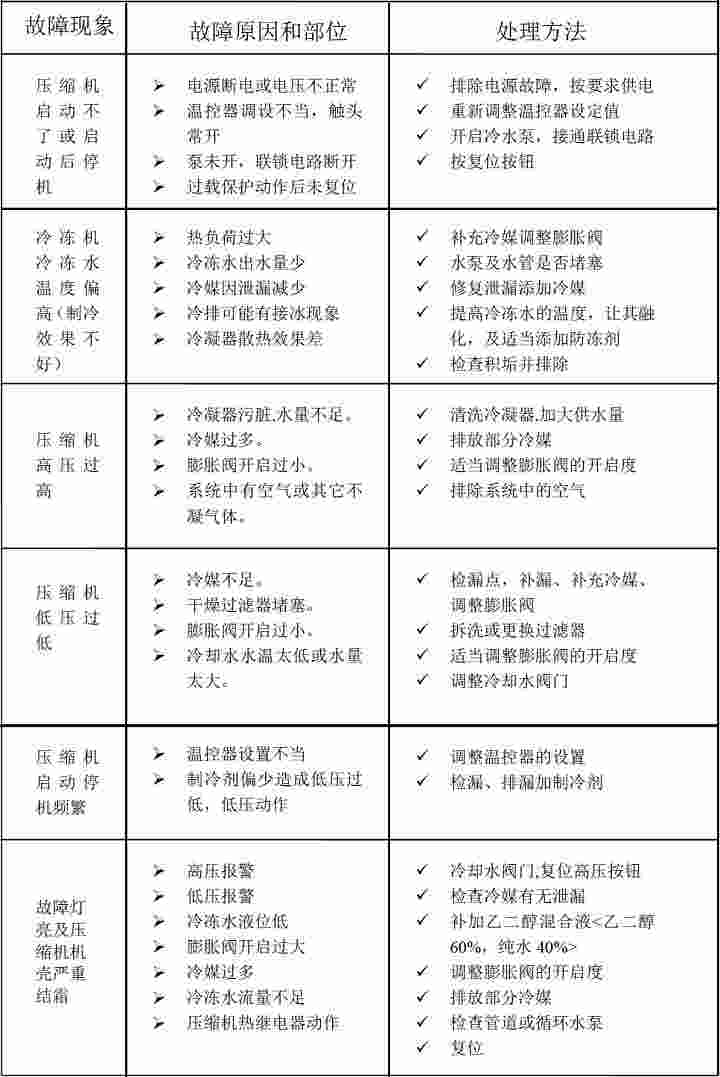 工業(yè)冷水機(jī)組常見故障原因與排除速查表