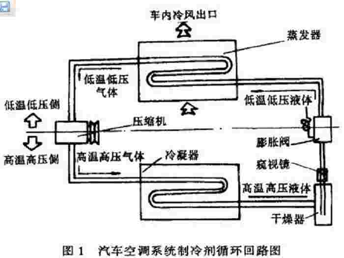 下面來(lái)看看汽車(chē)空調(diào)制冷系統(tǒng)工作原理圖
