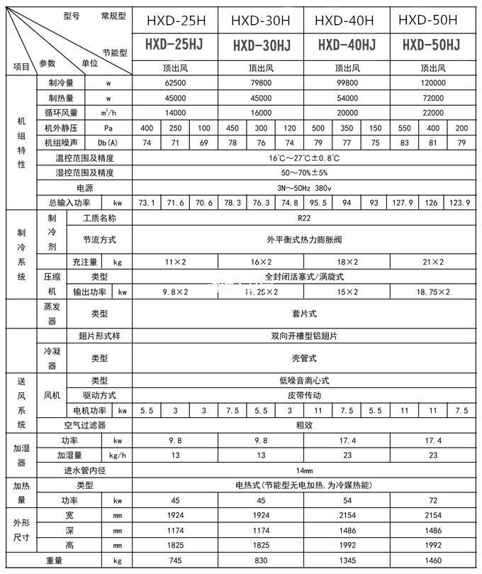 瀚信德恒溫恒濕機技術(shù)參數(shù)