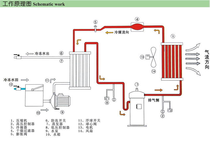 風冷式工業(yè)冷凍機組技術資料之工作原理圖如下